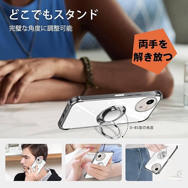 商品名:nahailun AQUOS wish5 ケース クリア リング付き 耐衝撃 aquos wish5 スマホケース wish5 ケース 柔軟 軽量TPU アクオス ウィッシュ 5 カバー 透明 薄型 レンズ保護スマホ 落下防止 カバー 滑り止め、すり傷防止 360°回転 スタンド機能 車載ホルダー対応 (ブラック)