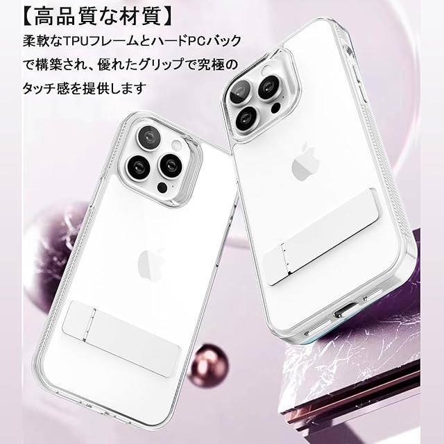 【極限透明感・機能スタンド】iPhone 13 Pro クリアケース スタンド機能 (メタルキック 3wayスタンドモード) 衝撃吸収 黄変防止/擦り傷防止 耐久性 薄型 軽量 スマホケース アイフォン13プロ 対応 カバー (iPhone13 Pro 6.1", 透明)