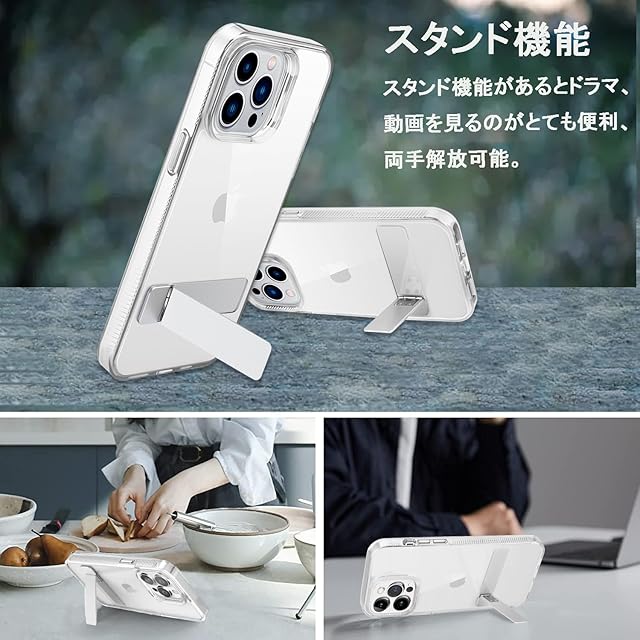 商品名:【極限透明感・機能スタンド】iPhone 13 Pro クリアケース スタンド機能 (メタルキック 3wayスタンドモード) 衝撃吸収 黄変防止/擦り傷防止 耐久性 薄型 軽量 スマホケース アイフォン13プロ 対応 カバー (iPhone13 Pro 6.1", 透明)