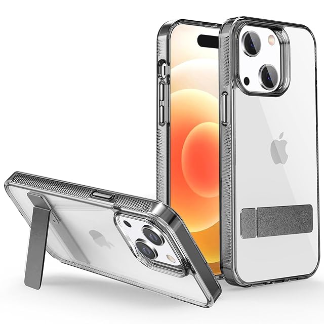 商品名:【極限透明感・機能スタンド】iPhone13 iPhone14 兼用 クリアケース スタンド機能 (メタルキック 3wayスタンドモード) 衝撃吸収 黄変防止/擦り傷防止 耐久性 薄型 軽量 スマホケース アイフォン13/アイフォン14 対応 カバー (iPhone 13/14 6.1", ブラック)
