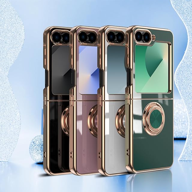 商品名:[ZoRoll] Samsung Galaxy Z Flip 6 対応 ケース リング付き、カバー スマホケース Galaxy Z Flip 6 TPU シリコン メッキ加工カバー、磁気吸着 軽量 薄型 人気 耐衝撃 タンド機能付き 360回転 車載ホルダー対応 サムスン ギャラクシーZ Flip6 用 カバー (ブラック)
