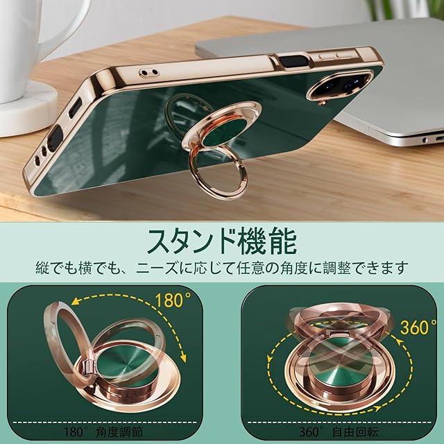 【リング付き スタンド機能】360°回転可能なリングホルダーは、片手で操作しやすく、滑り止め、ひったくり、落下防止などのたくさんのメリットがあります。スタンド機能により、180角度調節自由、携帯電話を立てて、いつでもどこでも映画や音楽、FaceTimeなどのエンターテインメントを楽しむことができます。磁性車載ホルダを支持し、金属板を内蔵して設計し、車両磁石の使用を支持することができます(車載ホルダを含まない)。ご注意:ケースの真ん中に磁気がありますので、直接にワイヤーレス充電ができませんので、ケースを取り外してから充電できます。