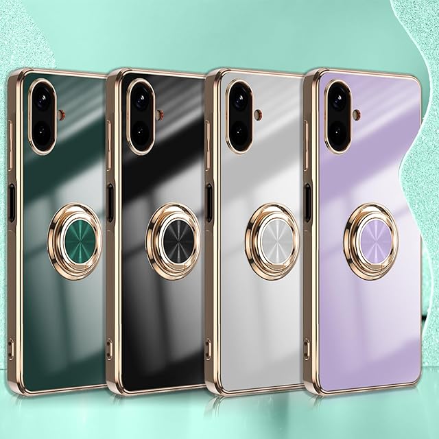 [ZoRoll] Samsung Galaxy A25 5G対応 ケース リング付き、スマホケース Galaxy A25 TPU シリコン メッキ加工カバー、磁気吸着 軽量 薄型 人気 耐衝撃 タンド機能付き 360回転 車載ホルダー対応 サムスン ギャラクシーA25 用 カバー (ダークグリーン)