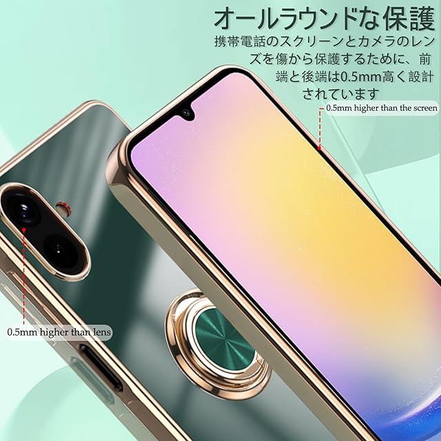 商品名:[ZoRoll] Samsung Galaxy A25 5G対応 ケース リング付き、スマホケース Galaxy A25 TPU シリコン メッキ加工カバー、磁気吸着 軽量 薄型 人気 耐衝撃 タンド機能付き 360回転 車載ホルダー対応 サムスン ギャラクシーA25 用 カバー (ダークグリーン)