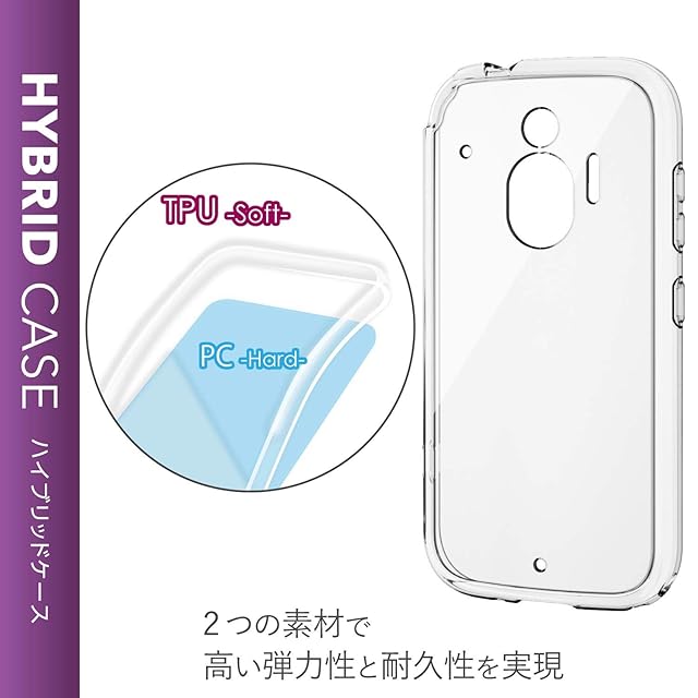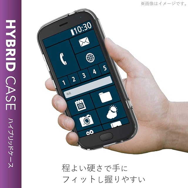 側面に弾力性のあるTPU素材を、背面に強じんで透明度の高いポリカーボネート素材を使用した、スリムなスタイルのらくらくスマートフォン(F-42A)、らくらくスマートフォンme(F-01L)用ハイブリッドケースです。