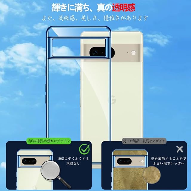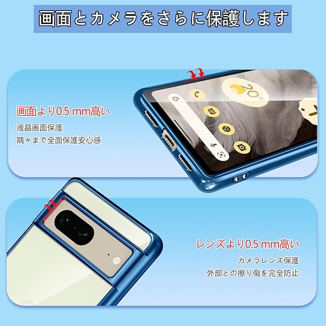 商品名:【Fuleeyuhn】Google Pixel 7 ケース クリア 耐衝撃 黄変防止 耐久性 ピクセル 7 カバー 透明 TPU素材 薄型 軽量 落下防止 擦り傷防止 スマホケース ストラップホール付き ワイヤレス充電対応 グーグル ピクセル 7 携帯ケース 6.4インチ(ブルー)