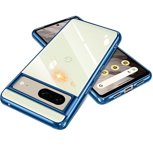 【Fuleeyuhn】Google Pixel 7 ケース クリア 耐衝撃 黄変防止 耐久性 ピクセル 7 カバー 透明 TPU素材 薄型 軽量 落下防止 擦り傷防止 スマホケース ストラップホール付き ワイヤレス充電対応 グーグル ピクセル 7 携帯ケース 6.4インチ(ブルー)
