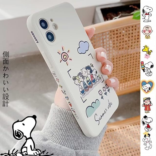 iPhone16 Pro Max 用 ケース スヌーピー スマホケース iphone16pro max 用ケース アイフォン16 プロマックス シリコンカバー レンズ保護 ワイヤレス充電対応 指紋防止【全機種対応】6.9インチ iPhone16ProMax用 白
