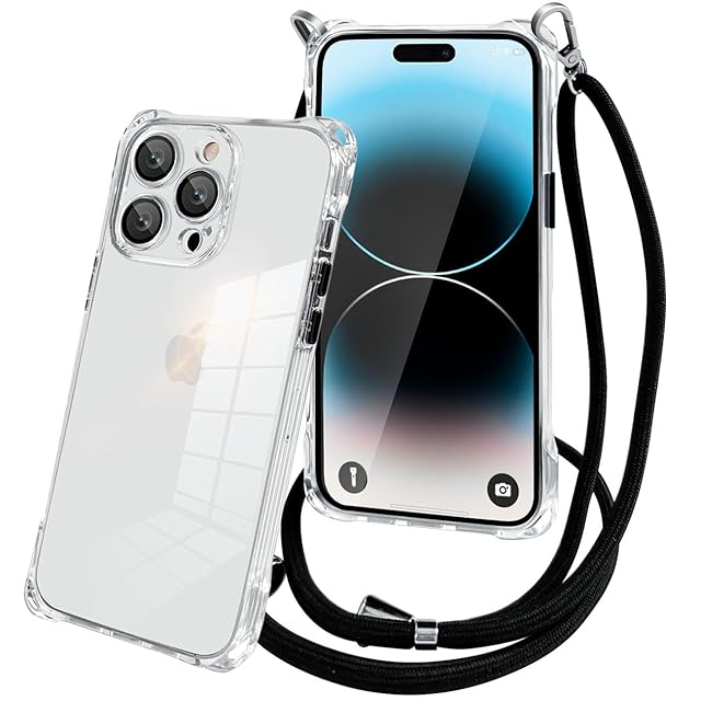 KEHUALLE iPhone 14ProMax ケース クリア ショルダースマホケース iPhone 14ProMax 耐衝撃 薄型 透明 TPU 携帯カバー ストラップ付き 肩掛け 斜めがけ 首掛け 紐付き 調節可能な ショルダー クロスボディ アイフォン 14ProMax 携帯ケース 6.7インチ用