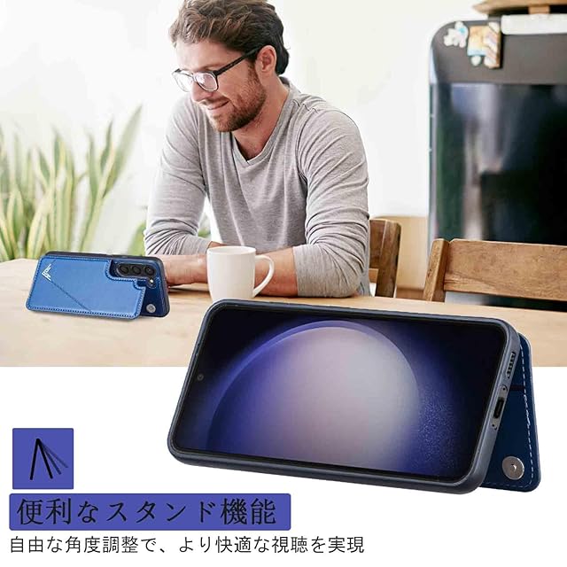【Aqier】カバー 用 Galaxy S23 Plus 5G / S23+ / docomo/au ケースカード (ネイビーブルー) ドコモs23p サムスンs23プラス ギャラクシーs23+ スマホケース 背面カード 収納 軽量 多機能 ケース 手帳型 galaxy s23+ BLUE