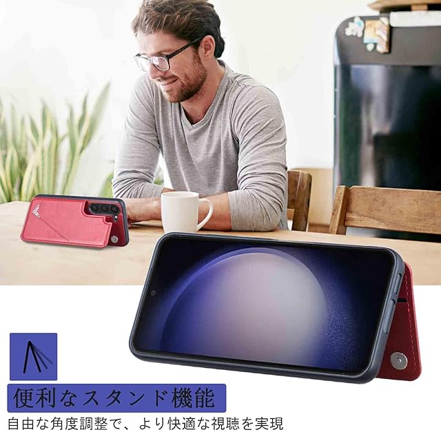 商品名:【Aqier】カバー 用 Galaxy S23 Plus 5G / S23+ / docomo/au ケースカード (レッド) ドコモs23p サムスンs23プラス ギャラクシーs23+ スマホケース 背面カード 収納 軽量 多機能 ケース 手帳型 galaxy s23+ RED
