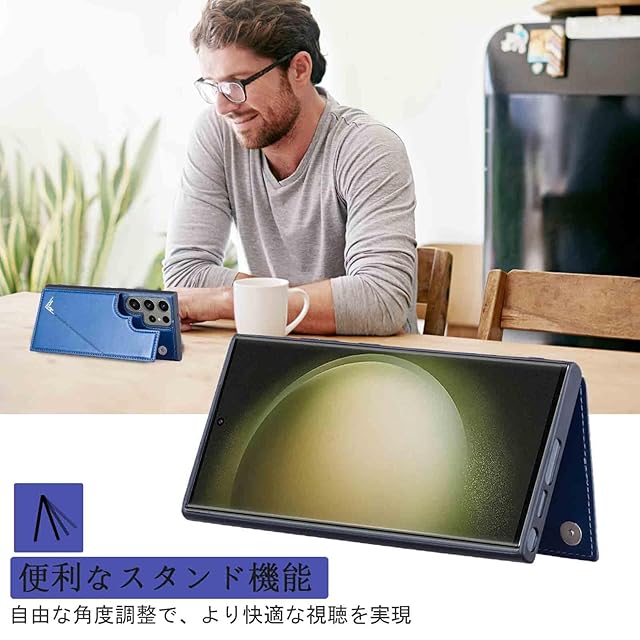 商品名:【Aqier】カバー 用 Galaxy S24 Ultra/docomo SC-52E / au SCG26 ケースカード (ネイビーブルー) サムスンscg26 ギャラクシー S24ウルトラ ドコモsc52e スマホケース 背面カード 収納 軽量 多機能 ケース 手帳型 サムスンS24u BLUE
