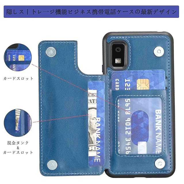 【Aqier】カバー 用 AQUOS sense6s / docomo SH-54B SH-RM19 SH-M19 / au SHG05 SHG07 ケースカード (ネイビーブルー) シャープ アクオス センス6s ドコモsh54b shrm19 shm19 スマホケース 背面カード 収納 軽量 多機能 ケース 手帳型 sense6 BLUE
