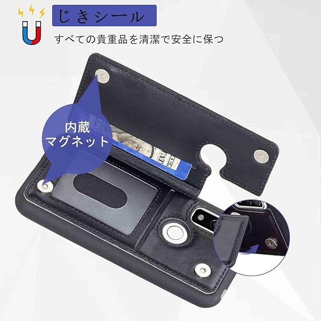 【Aqier】カバー 用 arrows We/docomo F-51B / au FCG01 / Softbank A101FC ケースカード (ブラック)アローズ ウィー ドコモf51b ソフトバンクa101fc スマホケース 背面カード 収納 軽量 多機能 ケース 手帳型 富士通f51b BLACK