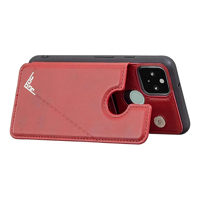 【Aqier】カバー 用 Pixel 5A 5G SoftBank ケースカード (レッド) グーグル ピクセル5a 5g ソフトバンクpixel5a 5g スマホケース 背面カード 収納 軽量 多機能 ケース 手帳型 pixel5a RED