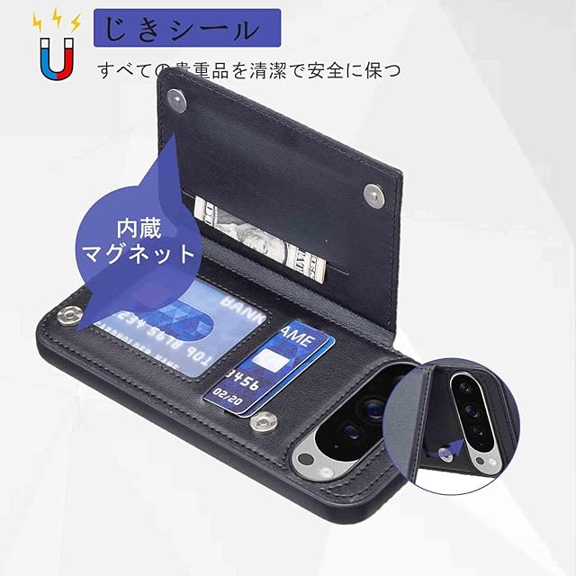 商品名:【Aqier】カバー 用 Pixel 9 Pro XL ケースカード (ブラック)ピクセル9プロxl スマホケース 背面カード 収納 軽量 多機能 ケース 手帳型 グーグルpixel9proxl BLACK