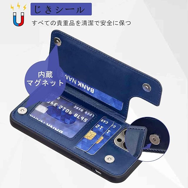 【Aqier】カバー 用 iPhone 13 PRO MAX 6.7 inch ケースカード (ネイビーブルー) アップル アイフォン13プロ マックス 6.7インチ スマホケース 背面カード 収納 軽量 多機能 ケース 手帳型 iphone13promax BLUE