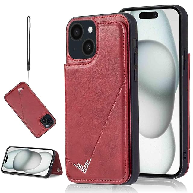 商品名:【Aqier】カバー 用 iPhone 14 PRO 6.1 inch ケースカード (レッド) アップル アイフォン14プロ 6.1インチ スマホケース 背面カード 収納 軽量 多機能 ケース 手帳型 iphone14pro RED