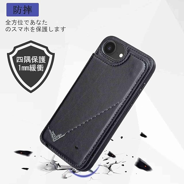 商品名:【Aqier】カバー 用 iPhone 16E 6.1 inch ケースカード (ブラック)アイフォン16e 6.1インチ スマホケース 背面カード 収納 軽量 多機能 ケース 手帳型 あいほん16e BLACK