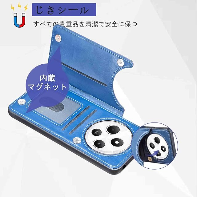 商品名:【Aqier】カバー 用 XIAOMI Redmi 14C ケースカード(ネイビーブルー)シャオミ レッドミー14c スマホケース 背面カード 収納 軽量 多機能 ケース 手帳型 シャオミredmi14c BLUE