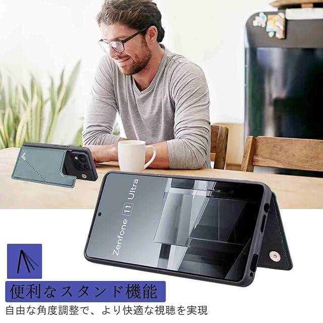 商品名:【Aqier】カバー 用 ASUS Zenfone 11 Ultra 5G ケースカード (ダルグリーン) ゼンフォン11ウルトラ スマホケース 背面カード 収納 軽量 多機能 ケース 手帳型 zenfone11u GREEN