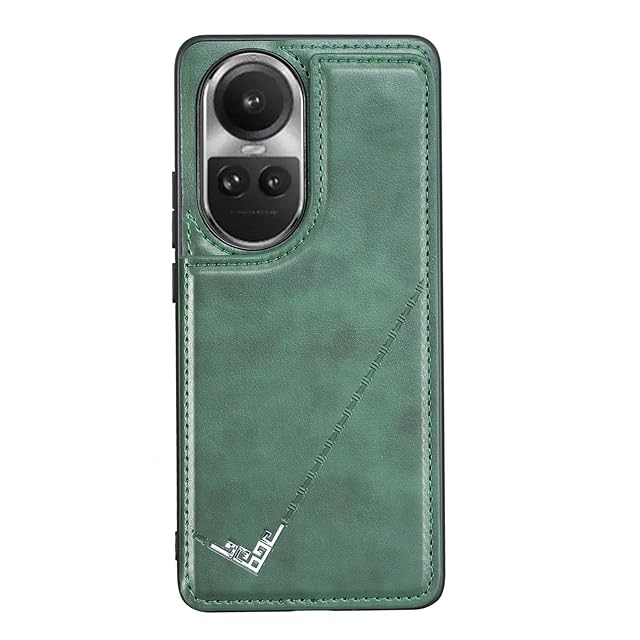 【Aqier】カバー 用 Reno10 Pro 5G ケースカード (ダルグリーン)オッポ リノ10プロ スマホケース 背面カード 収納 軽量 多機能 ケース 手帳型 オッポ reno10pro5g GREEN