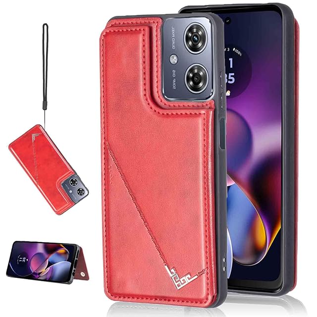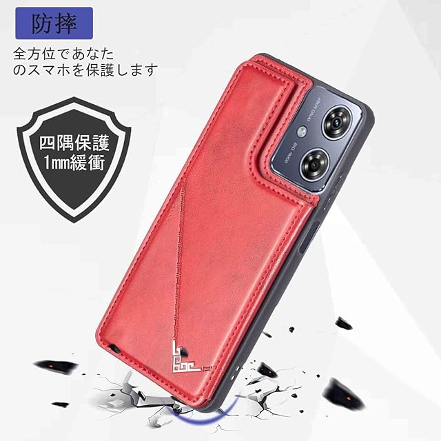 商品名:【Aqier】カバー 用 Moto G64 5G / G64Y 5G ケースカード(レッド)モトローラ g64 スマホケース 背面カード 収納 軽量 多機能 ケース 手帳型 モトg64 RED
