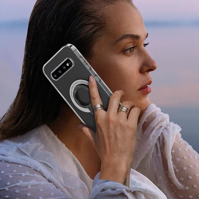 Galaxy S10 ケース SC-03L SCV41 透明 リング付き サムスン ギャラクシー S10 クリア スマホケース タンド機能 ストラップホール付き 擦り傷防止 滑り止め 落下防止(Galaxy S10 透明ケース)