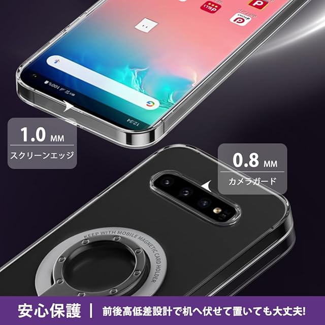 商品名:Galaxy S10 ケース SC-03L SCV41 透明 リング付き サムスン ギャラクシー S10 クリア スマホケース タンド機能 ストラップホール付き 擦り傷防止 滑り止め 落下防止(Galaxy S10 透明ケース)