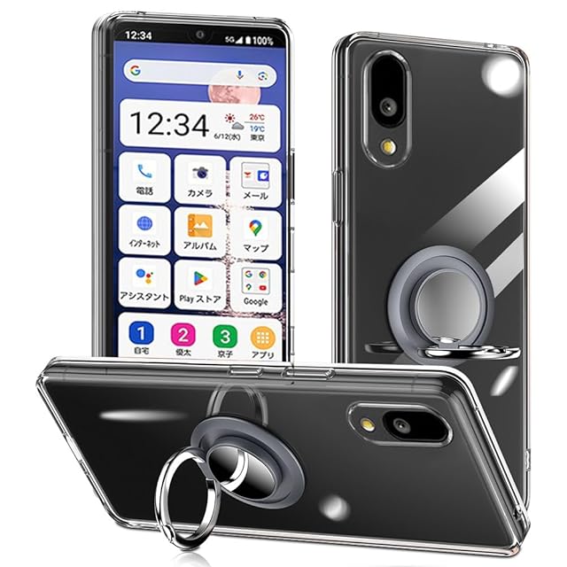 商品名:対応 Basio active2/active シンプルスマホ7/6 ケース リング付き 透明 BASIO active/active2 ベイシオアクティブ シンプルスマホ 7/6 SHG12 SHG09 A201SH スマホケース リング クリア シリコン 薄型 スタンド機能 耐久 滑り止め(BASIO active2/active クリア)