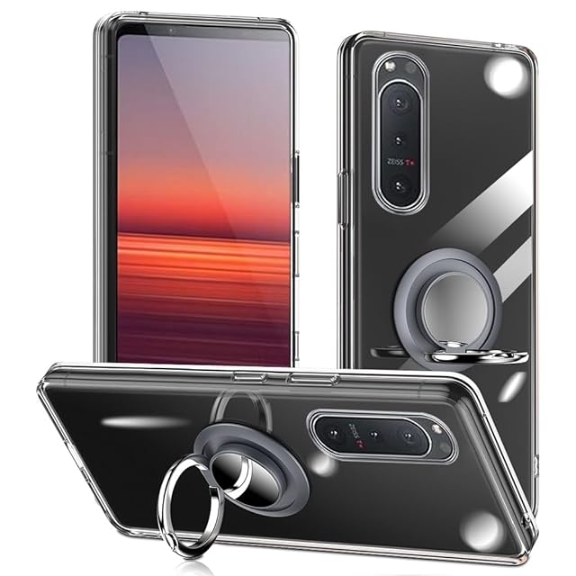 対応 Xperia 5 ii SO-52A ケース SOG02 リング付き 透明 エスクペリア5ii スマホケース リング クリア シリコン 薄型 スタンド機能 耐衝撃 耐久 滑り止め(Xperia 5 ii クリア)
