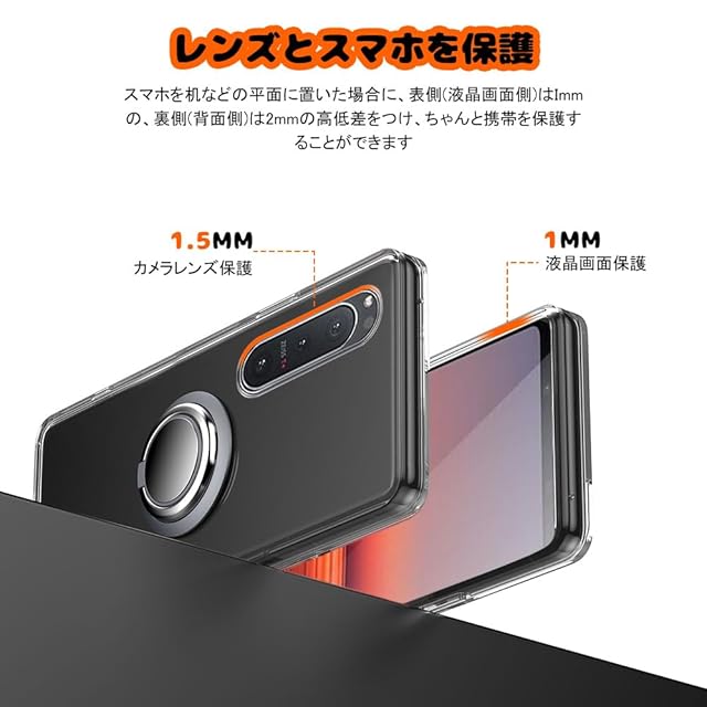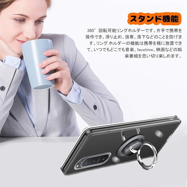 商品名:対応 Xperia 5 ii SO-52A ケース SOG02 リング付き 透明 エスクペリア5ii スマホケース リング クリア シリコン 薄型 スタンド機能 耐衝撃 耐久 滑り止め(Xperia 5 ii クリア)