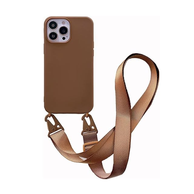 UnnFiko For iPhone 11 ケース ネックストラップ スマホケース 蛍光色 シリコン アイフォン 11 ケース シンプル ソフト 保護カバー 携帯ストラップ 紐付き 斜めがけ (iPhone 11, Caramel)