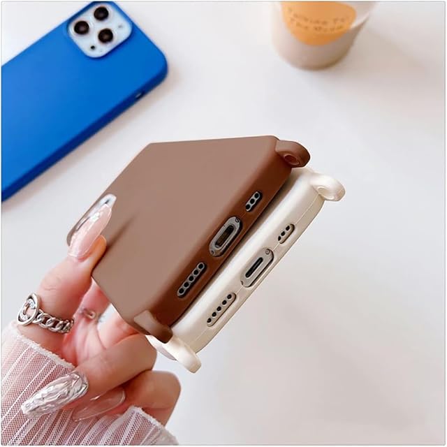 商品名:UnnFiko For iPhone 13 ケース ネックストラップ スマホケース 蛍光色 シリコン アイフォン 13 ケース シンプル ソフト 保護カバー 携帯ストラップ 紐付き 斜めがけ (iPhone 13, Caramel)