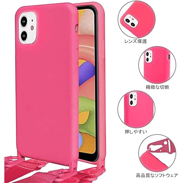 商品名:UnnFiko For iPhone 17 ケース ネックストラップ スマホケース 蛍光色 シリコン アイフォン 17 ケース シンプル ソフト 保護カバー 携帯ストラップ 紐付き 斜めがけ (iPhone 17,Pink Red)