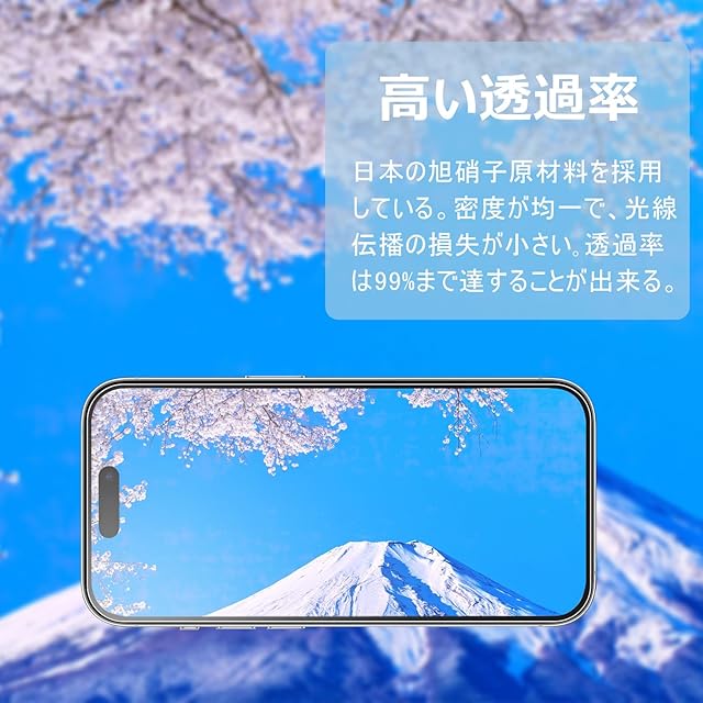 【99%の高透過率】画質を徹底して追求するため、最高級のガラスを選択し、99%透過率を実現しました。透き通ったガラスフィルムに多層フィルタフィルムを採用し、素晴らしい透明度を確保して、一体感になって、まるで貼っていないみないような感覚で携帯の美しさはそのままにお楽しみいただけます。