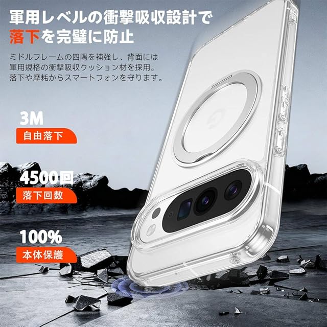Google Pixel 10 / Pixel 10 Pro 用 ケース Magsafe対応 ピクセル10 プロ カバー 360°回転スタンド 米軍MIL規格【MARR】スマホケース 携帯ケース ワイヤレス充電 車載ホルダー 対応 ストラップ穴付き 透明 指紋防止 黄变防止(クリア)