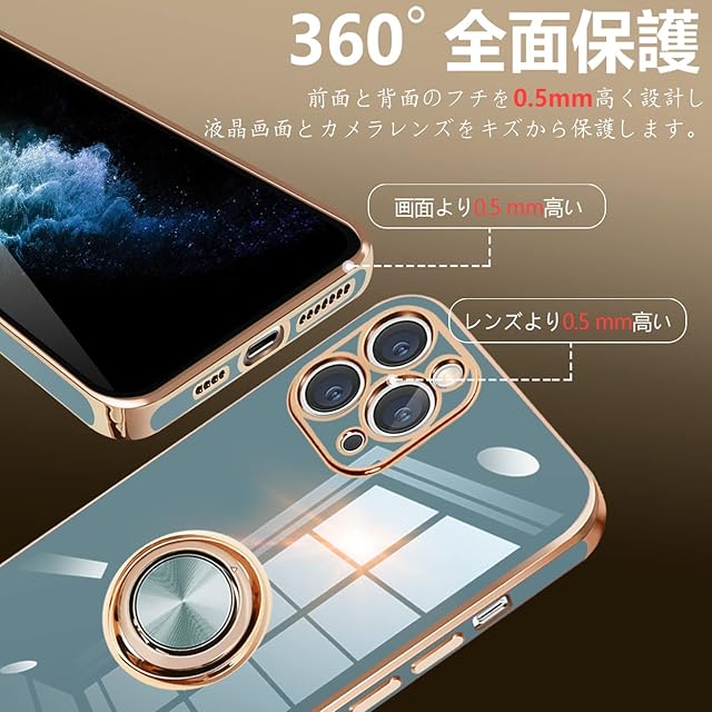 商品名:iPhone11 Pro Max ケース リング付き アイフォン11promax リング カバー 耐衝撃 TPU メッキ加工 360°回転 スタンド機能 車載ホルダー ストラップホール付き 6.5インチ(グレー)