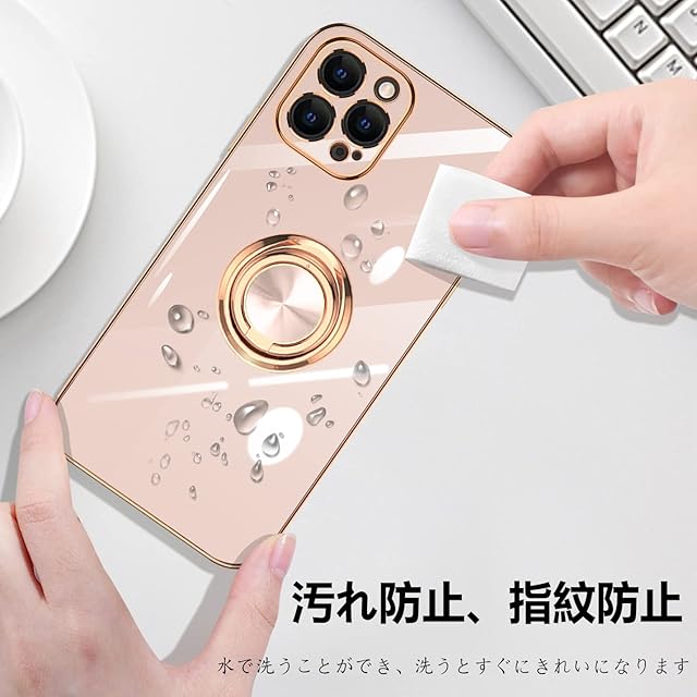商品名:iPhone12 pro ケース リング付き アイフォン12pro リング カバー 耐衝撃 TPU メッキ加工 360°回転 スタンド機能 車載ホルダー ストラップホール付き 6.1インチ(ピンク)