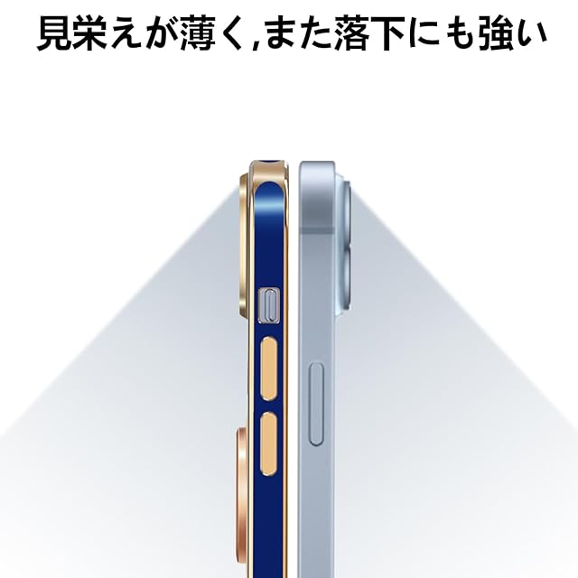 iPhone15 Plus ケース リング付き アイフォン15Plus リング カバー 耐衝撃 TPU 360°回転 スタンド機能 メッキ加工 車載ホルダー ストラップホール付き 6.7インチ(ブルー)