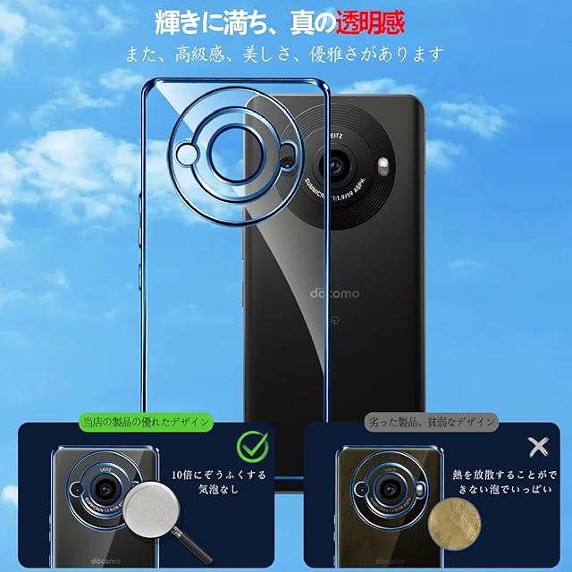 商品名:【FULEEYUHN】AQUOS R8 pro ケース クリア 軽量 薄型 黄変防止 アクオス R8 pro カバー 透明 SH-51D SH-R80P 対応 スマホケース 上質TPU素材 柔らかい手触[耐衝撃 レンズ保護 傷防止 落下防止 携帯便利]ストラップホール付き(ブルー)