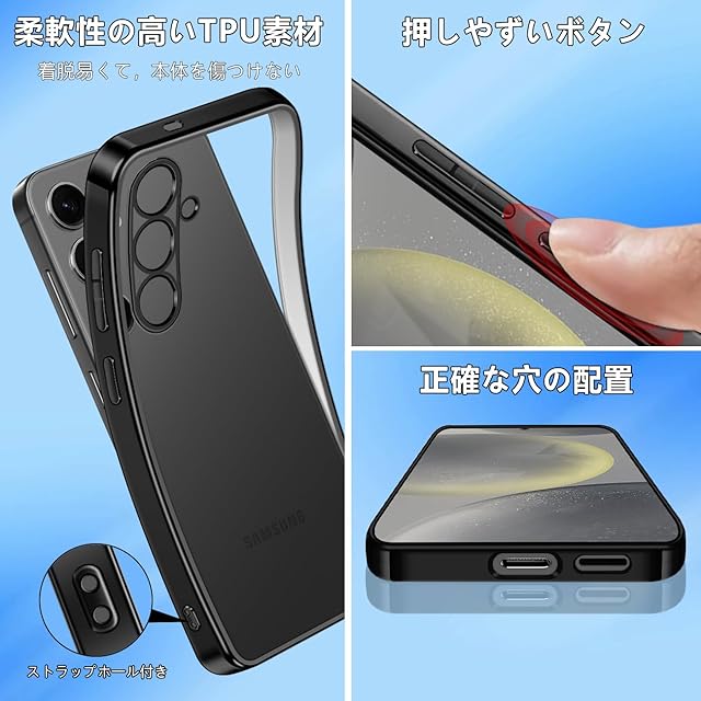 【高品質素材&精密設計】本製品は高品質のTPU素材を採用し、Samsung Galaxy S24 のボディデザインに完璧にフィット。大切な 携帯電話を落下時の衝撃や傷など、あらゆるダメージからしっかりと守ります。スマホとぴったりフィットします、ケースを付けても接続端子やイヤホン、サイド側ボタンなどスムーズに操作できます。