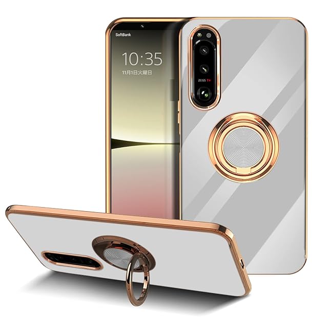 LuFiYa Sony Xperia 10 V 5G 用 ケース リング付き カバー TPU素材 スタンド機 Xperia 10 V スマホケース 軽量 耐衝撃 薄い 擦り傷防止 落下防止 車載ホルダー 360°回転 ケース Sony Xperia 10 V 5G 対応 (ホワイト)