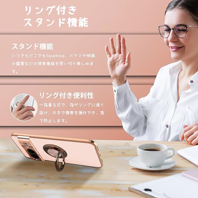 LuFiYa Google Pixel 8 5G 用 ケース リング付き カバー TPU素材 スタンド機 Pixel 8 スマホケース 軽量 耐衝撃 薄い 擦り傷防止 落下防止 車載ホルダー 360°回転 ケース Google Pixel 8 5G 対応 (ピンク)