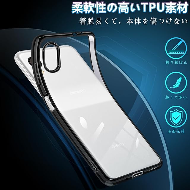 商品名:Galaxy A23 5G ケース クリア SC-56C SCG18 スマホケース 透明 TPU 薄型 軽量 耐衝撃 メッキ加工 ソフト 人気 保護カバー (ブラック)