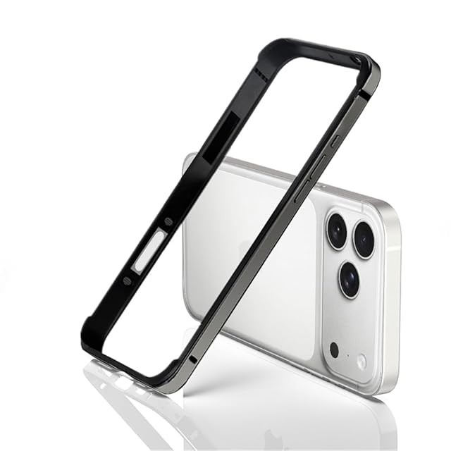 商品名:【YMXPY】iPhone17ProMax 用 アルミバンパー ケース メタル+シリコン フレーム 二重構造 レンズ保護 軽量 ストラップ穴 耐衝撃 バンパー (ブラック, iPhone17ProMax用)