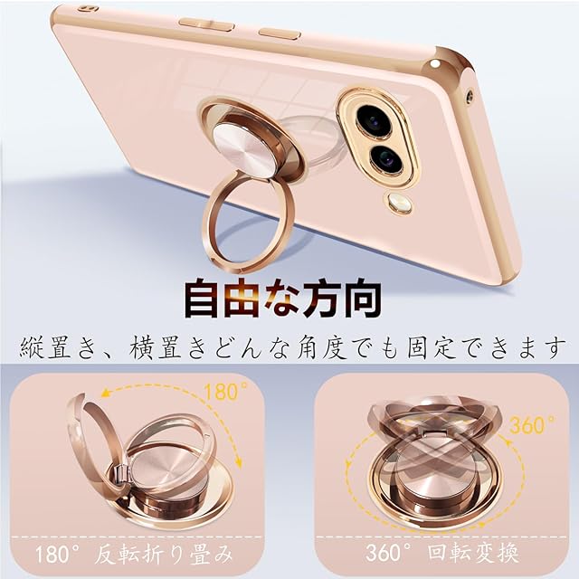 商品名:Google Pixel9a ケース リング付き グーグル ピクセル 9a リング カバー 耐衝撃 TPU メッキ加工 360°回転 スタンド機能 車載ホルダー ストラップホール付き(ピンク)