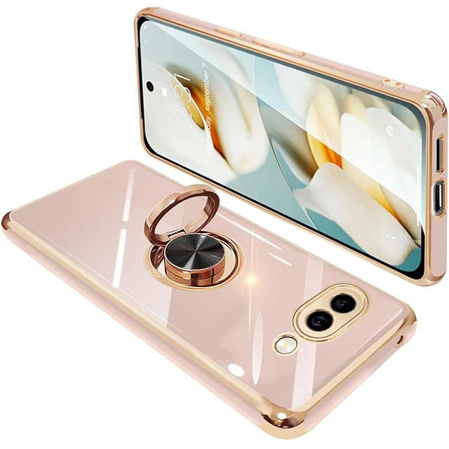 Google Pixel9a ケース リング付き グーグル ピクセル 9a リング カバー 耐衝撃 TPU メッキ加工 360°回転 スタンド機能 車載ホルダー ストラップホール付き(ピンク)