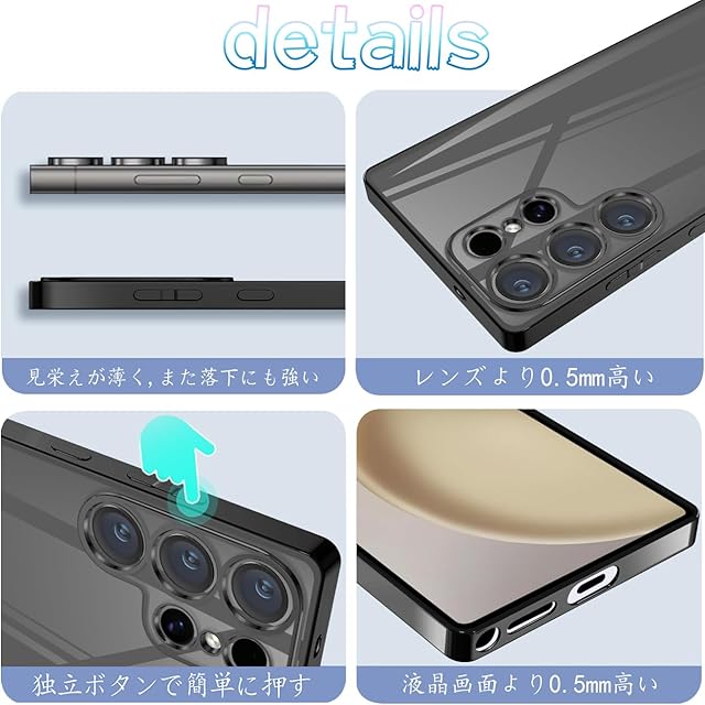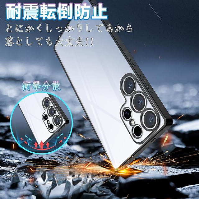 商品名:Galaxy S25 Ultra ケース クリア ギャラクシーs25 Ultra SC-52F SCG32 カバー 透明 スマホケース 耐衝撃 米軍MIL規格 TPU 軽量 薄型 ストラップホール付き メッキ加工 ソフト おしゃれ 携帯ケース (ブラック)