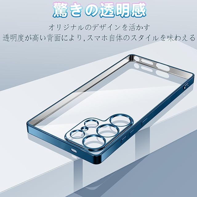 商品名:Galaxy S25 Ultra ケース クリア ギャラクシーs25 Ultra SC-52F SCG32 カバー 透明 スマホケース 耐衝撃 米軍MIL規格 TPU 軽量 薄型 ストラップホール付き メッキ加工 ソフト おしゃれ 携帯ケース (ブルー)